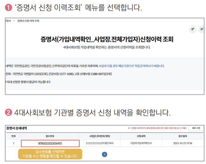 개인은 본인의 가입 내역만 확인 가능하며, 사업주는 소속 직원 전체의 명부를 발급할 수 있습니다. - 개인정보 보호