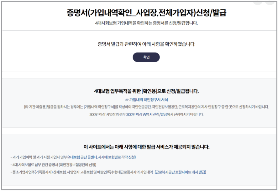 | 개인 발급 | 본인 가입 내역만 가능 |