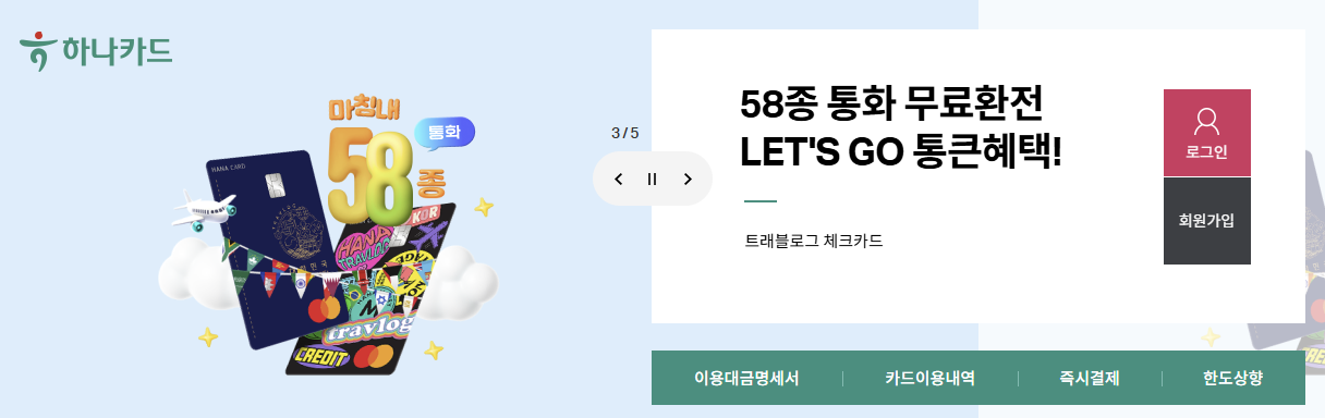 하나카드 홈페이지 바로가기