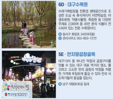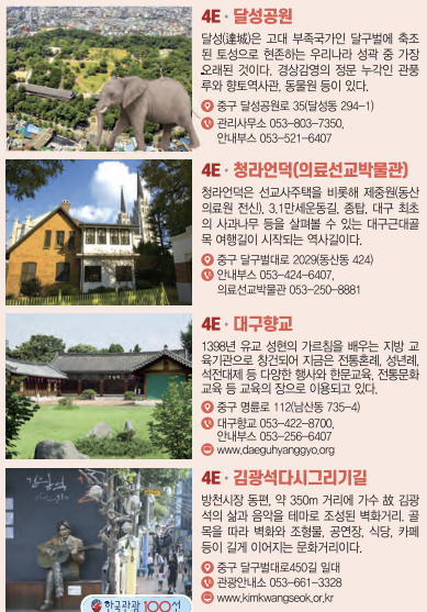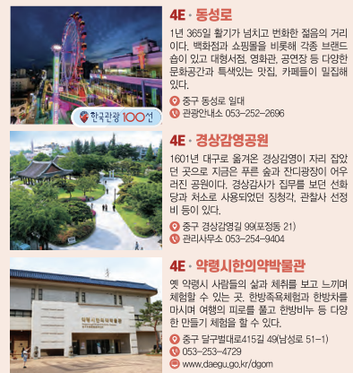 | 동성로 | 쇼핑과 외식의 중심지 | 쇼핑, 거리 공연 관람 |
