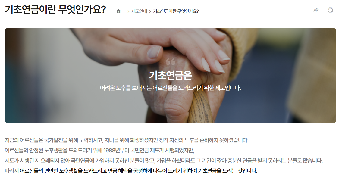 - 주요 목적: 고령층의 빈곤율을 줄이고, 기본적인 생활비를 지원하여 사회적 안정성을 높이는 것.